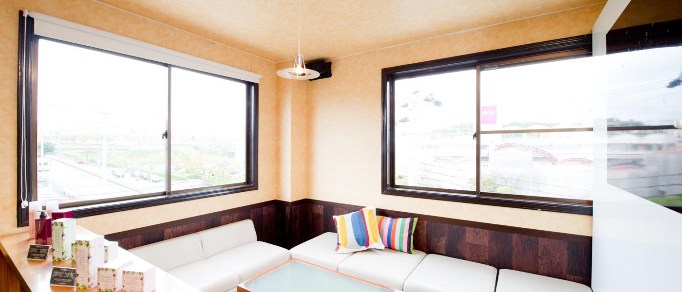 神鉄岡場駅の改札を出て右に出るとバスターミナルがあり左に線路沿いに歩いて、2つめの信号を左へ200mぐらい進むと左手ともの薬局の看板があるビルの3Fにサロンがあります。 駅から徒歩5分